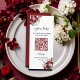 Burgundy Floral Modern QR Code Wedding Open Bar Menu