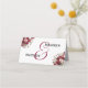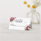 This elegant Burgundy Floral Modern Script Wedding Table Number Place Card can be customized with your names (on the back).
