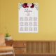 Easily help your guests find their seat with this poster wedding seating chart, featuring a watercolor burgundy and blush floral bouquet with eucalyptus greenery at the top, and a modern script monogram with ampersand and the names of the bride and groom.
