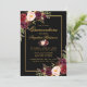 Burgundy Floral Quinceanera Black Gold Photo Back Invitation