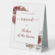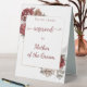 Ensure your special guests have their place with this elegant table tent sign from the Burgundy Watercolor Floral Wedding Suite. Designed with romantic burgundy and silver watercolor florals, this folded card reads "This seat is reserved for" with customizable text to honor your VIPs. Perfect for reserving ceremony or reception seats in style. Fully editable for names or messages
