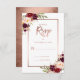 Beautiful burgundy floral watercolor wedding rsvp design, faux rose gold foil frame and rose gold hand lettered script for "rsvp" text. Back of card is a printed rose gold foil photo affect. Matching Chic Rose Gold Foil Floral Wedding Invitations are available in the store. Customize with your wedding rsvp text