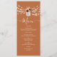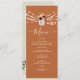 Add rustic charm and elegance to your wedding reception with this beautifully designed orange wedding menu. Featuring a personalized monogram, watercolor burgundy florals in vintage mason jars, and the soft glow of string lights, it brings warmth and personality to your tablescape. Finished with modern calligraphy script, this autumn-inspired menu is perfect for barn, outdoor, or boho fall weddings. Customize with your meal details to create a memorable dining experience for your guests.