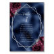 Burgundy Floral Silver Frame Navy Foil Wedding Table Number