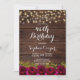 Burgundy Floral String Lights Wood 40th Birthday Invitation