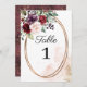 Burgundy Floral Wedding Table Number