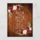 Burgundy Floral Wood Geo Frame Save the Date Postcard