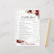 Burgundy Florals Bridal Shower Game PRINTED