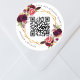 Burgundy florals gold geometric QR code wedding Classic Round Sticker