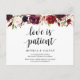This is the modern rustic Burgundy florals design themed, in Black font, Wedding party invitation Rescheduled (postponed / postponement) postcard (love is patient) . It is the perfect and elegant way to make the reschedule announcement to your friends and family.
