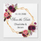 A Save the Date magnet. A faux gold colored geometric shaped frame with bohemian, boho style watercolored roses, flowers in burgundy and pink. Personalize and add your names, date of the wedding.