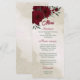 Unique pretty wedding menu featuring romantic burgundy flowers and green leaves.