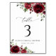 Burgundy Flowers, Red Flowers, Boho, Table Numbers
