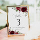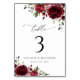 Burgundy Flowers, Red Flowers, Boho, Table Numbers