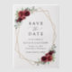Invite friends and family in style and set the tone for your special day with this charming save the date card. Design features burgundy watercolor flowers, greenery and gold frame.