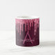 An elegant, girly and glamorous mug. Dark pink cherry colored faux glitter drips. Deep, dark moody burgundy gradient background. Personalize and add a name and monogram letter. The name is written with a modern hand lettered style script. Light pink and burgundy colored letters.