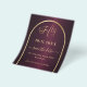 A Save the Date for a 50th birthday party. A burgundy background, decorated with a faux gold arch. Personalize and add a date and your name. The text: Fifty and Save the Date is written with a large trendy hand lettered style script.