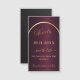 A magnetic Save the Date card for a 90th birthday party. A burgundy background, decorated with a faux gold arch. Personalize and add a date and your name. The text: Ninety and Save the Date is written with a large trendy hand lettered style script.