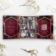Burgundy Gold Abstract Fluid Ink QR Code Wedding Tri-Fold Invitation