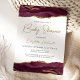 This trendy baby shower invitation features a top and bottom border of watercolor agate geode in shades of burgundy with faux gold glitter highlights. The words "Baby Shower" and the name of the mom-to-be appear in gold-colored handwriting script. Add the party details in charcoal gray on a white background. A matching burgundy and gold agate image appears on the reverse side.