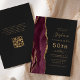 Burgundy Gold Agate QR Code 50th Birthday Invitation