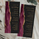 The left-hand edge of this elegant modern wedding program features a burgundy red watercolor agate border trimmed with faux gold glitter. The customizable text combines gold-colored calligraphy script and sans serif fonts on a dark background.