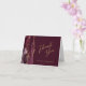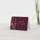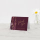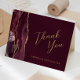 The left-hand edge of this elegant flat wedding thank-you card features a burgundy watercolor agate design trimmed with gold faux glitter. The text is in gold-colored script and sans serif fonts on a burgundy red background.