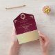 This unique envelope-style all-in-one invitation features a rich burgundy background framed with ornate vintage gold baroque flourishes and a refined monogram crest. The design blends timeless European elegance with practical wedding planning features, making it perfect for couples who want both style and functionality.
