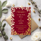 Invite your guests in timeless luxury with this elegant wedding invitation, featuring a burbundy background and real gold foil details. The gold leaves frame your wedding text beautifully, adding a sophisticated and romantic touch to your special day.