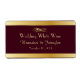 Chic wedding mini wine labels ready for you to personalize with your own information. Elegant dark burgundy with gold tone accent borders, on the top and bottom of this horizontal label. Graphics of a gold tone elegant flourish, at the top, and custom golden yellow text below it. Personalize the text for your wedding reception. Great for your wedding reception table or guest favors.