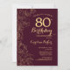 Burgundy Gold Floral 80th Birthday Party Invitation