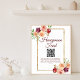 Elegant burgundy floral wedding honeymoon fund poster with a beautiful peach peony watercolor flower bouquet decorating the gorgeous faux glitter gold frame surrounding the lovely typography and your custom website QR code.