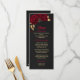 beautiful burgundy flowers and gold leaves elegant black wedding menu.
