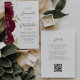 Plain white envelopes are included with paper invitations and will come to fit the invitation size you select. If you don’t need the envelopes, you may choose to not receive them by selecting the dropdown below "Envelopes" and choosing "None." If you’d like to have a design on your envelopes, you can browse all of these available envelopes to find the design that complements your Burgundy Gold Floral Qr Code Wedding Invitation.