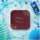 This burgundy gold floral wedding paper plates features a gorgeous sophisticated dark merlot backdrop with elegant gold calligraphy and gilded floral embellishments. The jewel-tone color story and the golden botanical boho accents together with minimal delicate script create a regal and romantic modern aesthetic that strikes a perfect balance between classic traditional vintage and contemporary casual, making it an easy choice for a diverse variety of weddings and events. As with all of our designs, if you have any questions or special requests for coordinating products, please reach out to us.