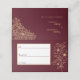 This burgundy gold floral wedding place card features a gorgeous sophisticated dark merlot backdrop with elegant gold calligraphy and gilded floral embellishments. The jewel-tone color story and the golden botanical boho accents together with minimal delicate script create a regal and romantic modern aesthetic that strikes a perfect balance between classic traditional vintage and contemporary casual, making it an easy choice for a diverse variety of weddings and events. As with all of our designs, if you have any questions or special requests for coordinating products, please reach out to us.