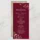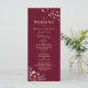 Elegant wedding program card featuring a deep burgundy background, glowing string lights, and romantic rose gold floral accents. Includes space for your ceremony order and personalized names and date. A perfect touch for rustic, fall, or romantic wedding ceremonies.