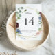 This burgundy gold geometric wedding table number is perfect for a winter wedding. The elegant boho design features watercolor navy, blush pink and wine shade flowers with artistic penciled details.