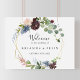 This burgundy gold geometric wedding welcome sign is perfect for a winter wedding. The elegant boho design features watercolor navy, blush pink and wine shade flowers with artistic penciled details.