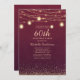Burgundy Gold Glitter String Lights Formal 60th Invitation