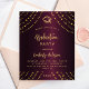 A deep burgundy gradient background decorated with faux gold stars and a cap. Personalize and add a name, party details and year. The text Graduation and the name are written with modern hand lettered style script.