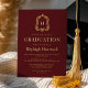 Burgundy Gold Monogram Crest Graduation Party Foil Invitation