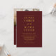 This burgundy and gold wedding invitation is the perfect mix of romance and sophistication. The deep burgundy background creates a rich, luxurious base, while the gold typography adds just the right touch of warmth and elegance.