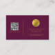 Burgundy Gold Script QR Code Social Media Business Card