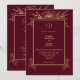 Burgundy Gold Simple Monogram All In One Wedding Invitation