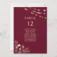 This elegant burgundy seating chart card features romantic string lights, gold floral accents, and a clean layout for listing guest names by table. A perfect match for rustic, fall, or formal receptions—ideal for individual place setting displays.