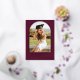 Honor your graduate's achievement with this elegant burgundy and gold-themed graduation announcement. Featuring a bold gold-foil "Graduate" calligraphy script, and space for a large photo in a modern arched frame, this design exudes sophistication and charm. Perfect for high school or college graduations, it blends modern style with timeless elegance. Personalize with your details to create a memorable keepsake.