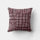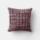 Modern throw pillow features an abstract broken line geometric art pattern in a burgundy and gray color palette with white accents. A stylish modern global-inspired pattern; one design of a coordinating collection.