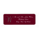 Monogram Wedding Invitation Return Address Labels. Design by Elke Clarke ©. Customize with your monogram initial, name and address details. Choose the background color and monogram color too. Shown with Burgundy red and gray initial in an elegant script font. Perfect as address labels for the front of your RSVP envelopes or return address labels for your wedding invitations.