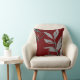 Modern throw pillow features an artistic abstract design in a burgundy and gray color palette. A stylish modern design features watercolor leaves and a geometric circle composition with an inquisitive hummingbird in the upper left hand corner. This modern composition is built on combinations of repeated leaves and circles, which are overlapped and interlaced to form an intricate design. The burgundy and gray accents are layered and interspersed to give perspective and depth to the overall design.